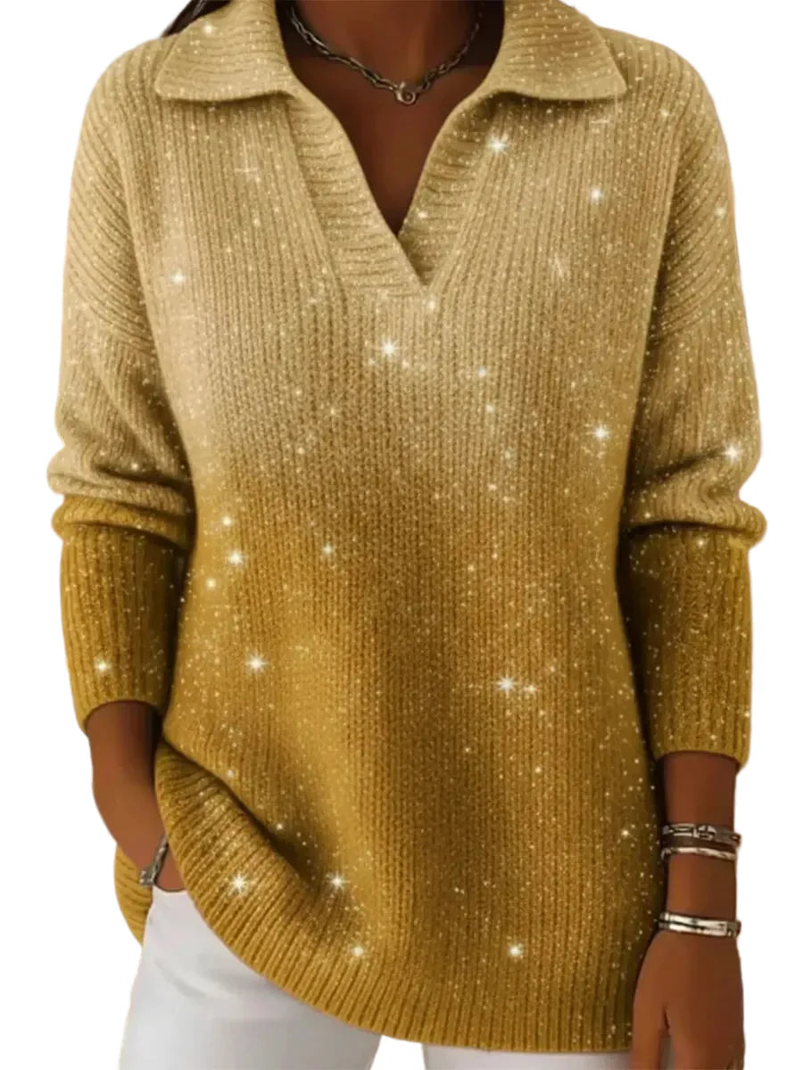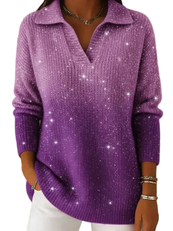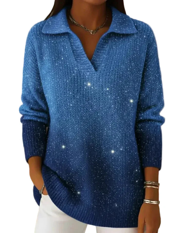 A FALKA™ é uma camisola de malha criada para mulheres que gostam de peças sofisticadas, femininas e com detalhes únicos. O colarinho estilo polo dá um ar moderno e elegante, enquanto o padrão inspirado num céu estrelado traz um charme especial e delicado — perfeito para dar destaque ao look sem exageros.